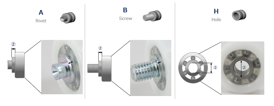Step 2 : Check the kind of inner race and measure the dimensions of ②.