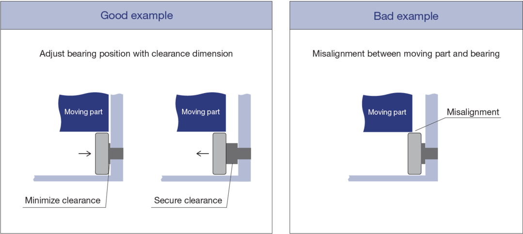 Caution: Make sure the end face of the outer race (the rotating part) does not come into contact with the mating component. Such contact may cause rubbing during rotation and reduce the bearing’s performance.
