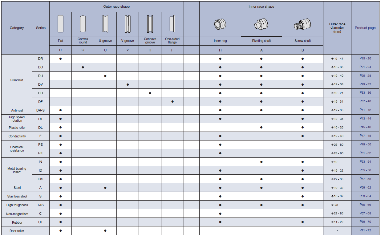 | Door roller | Door roller-series | ● | ||||||||||||||